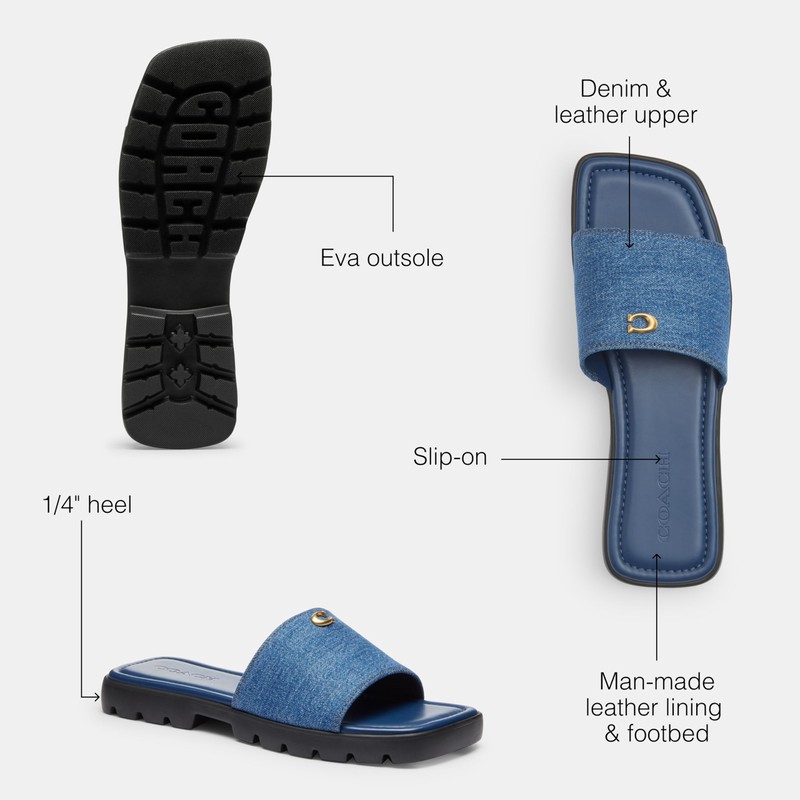 - Editor's Notes: An elevated, every day sandal. The outsole on these denim slide sandals offer great traction on city streets