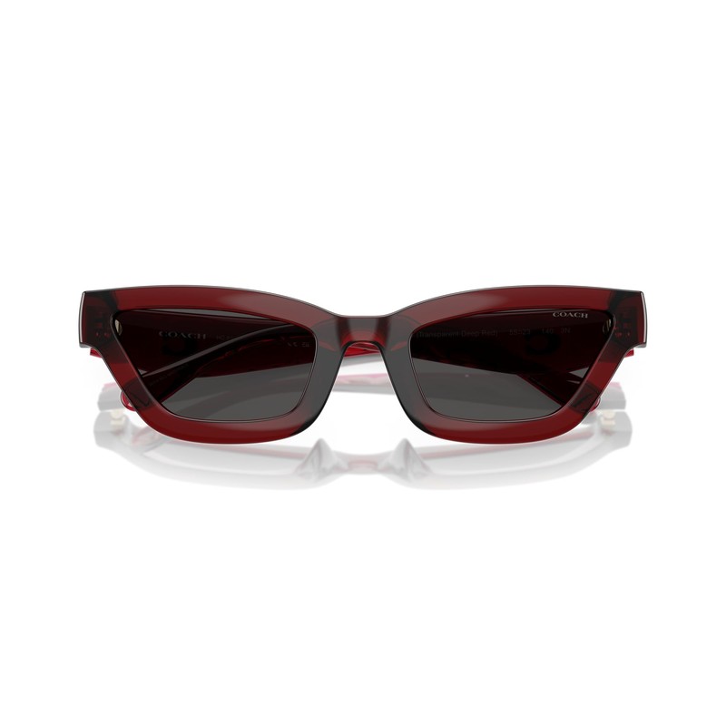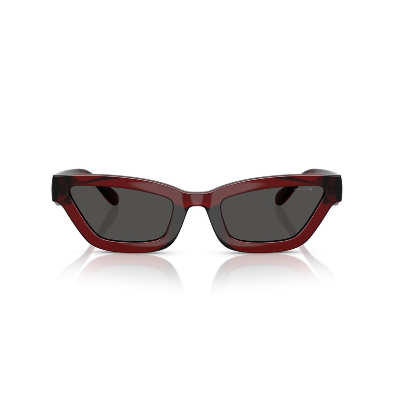 Coach Women's HC8420U Universal Fit Rectangular Sunglasses, Transparent Deep Red/Grey Solid, 55 mm