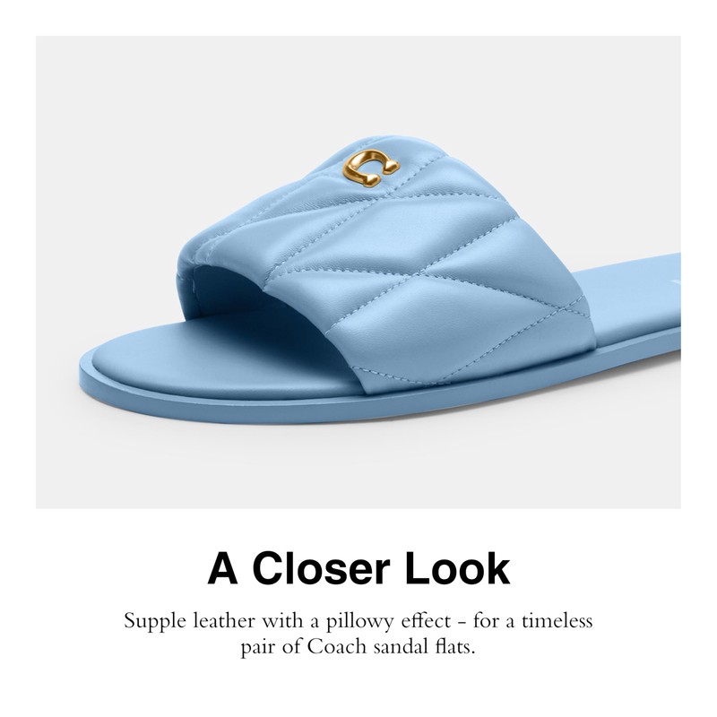 • Nappa Leather: Supple leather with a pillowy effect - for a timeless pair of Coach sandal flats