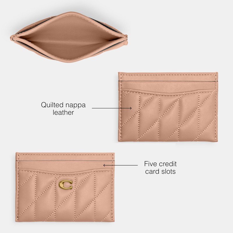 - Quilted Nappa Leather: Puff pieces. Supple leather undergoes a time-intensive sewing technique to create a pillowy quilted effect - for a timeless Coach wallet