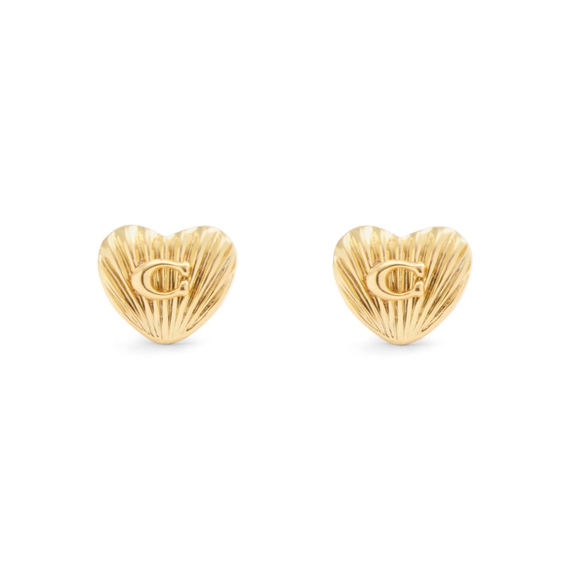 - EDITOR'S NOTES : Charming rib textured heart stud earrings adorned with signature sculpted C hardware at center and hypoallergenic titanium posts perfect for everyday. Includes signature COACH jewelry dustbag.