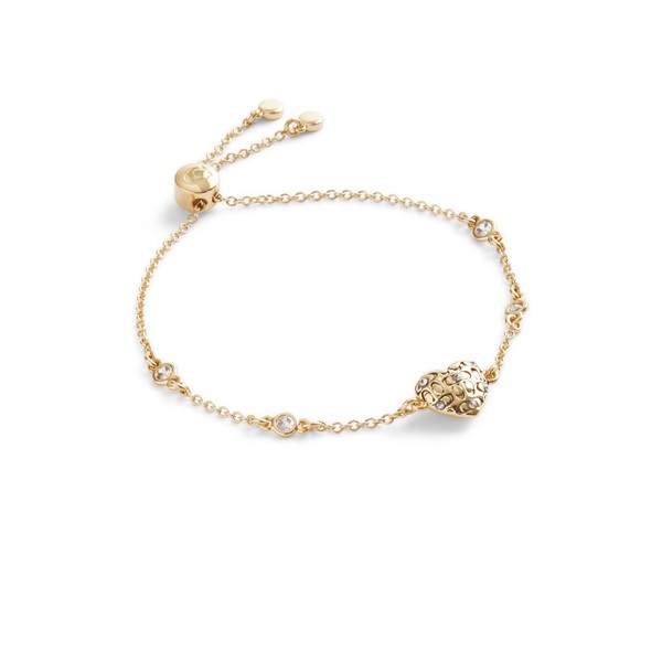 - EDITOR'S NOTES : Refined chain slider bracelet featuring minimal cubic zirconia stones and heart charm adorned with quilted signature sculpted C motif and delicate crystal stone accents.