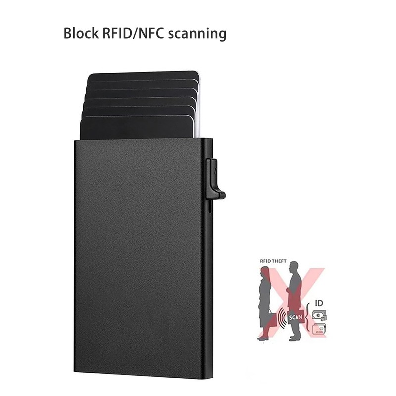 - RFID and NFC blocking: This smart wallet uses advanced aluminum technology to protect your card from unauthorized and contactless scanning. Prevent thieves from cloning your bank card and prevent data theft.