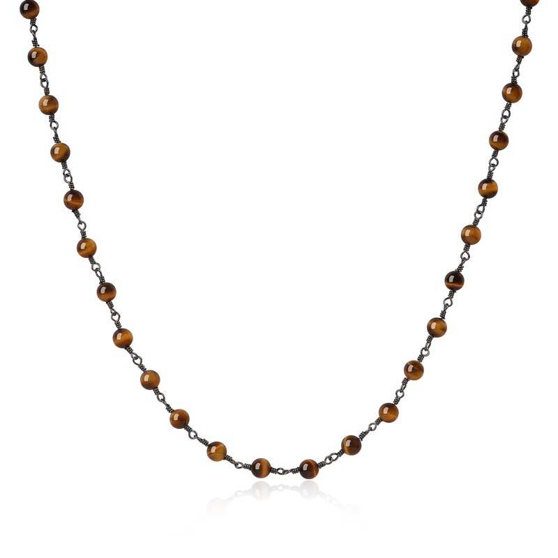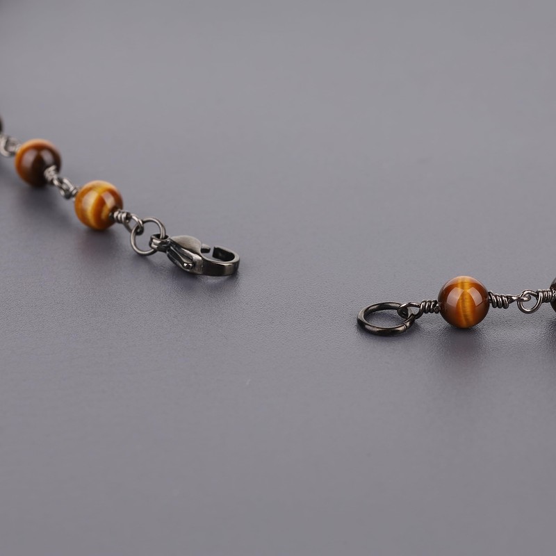 - Collar de abalorio: ojo de tigre café de 6 mm