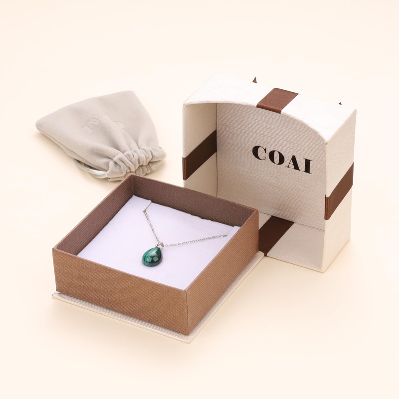 COAI Damen Edelstein Halskette mit Malachit Tropfenanhänger und 925er Sterlingsilberkette