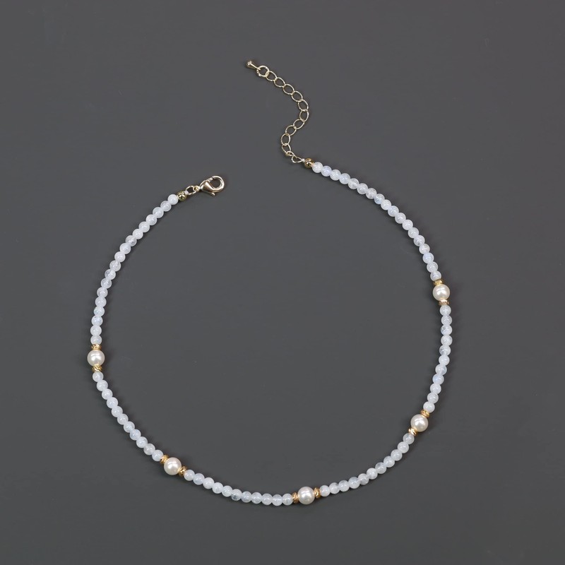 - Bead chain: 4 mm moonstone, 6.5 mm shell beads, chain length 35 cm with 5 cm extension