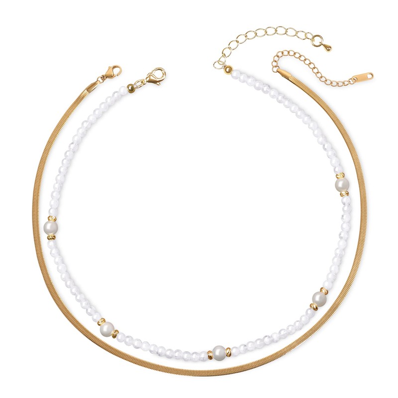 COAI Gemstones Choker 2 Pieces, Stainless Steel Moonstone Stainless steel, Moonstone