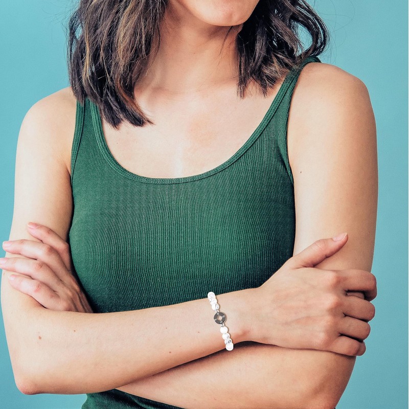 - Material: 8mm Matte Onyx, Howlite; Stainless steel compass charm