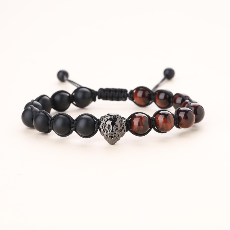 - Material: 8 mm matte onyx and red tiger eye. Lion head charm made of copper, size 12 x 11 x 9 mm