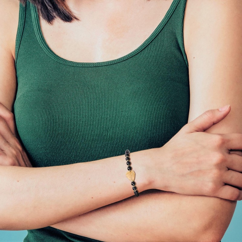 Particularly noteworthy is our black tourmaline, known for its protective properties, and the mysterious moonstone prized for its soothing energies. These gemstones are complemented by elegant gold plated stainless steel intermediate pieces that add sophistication to any bracelet.