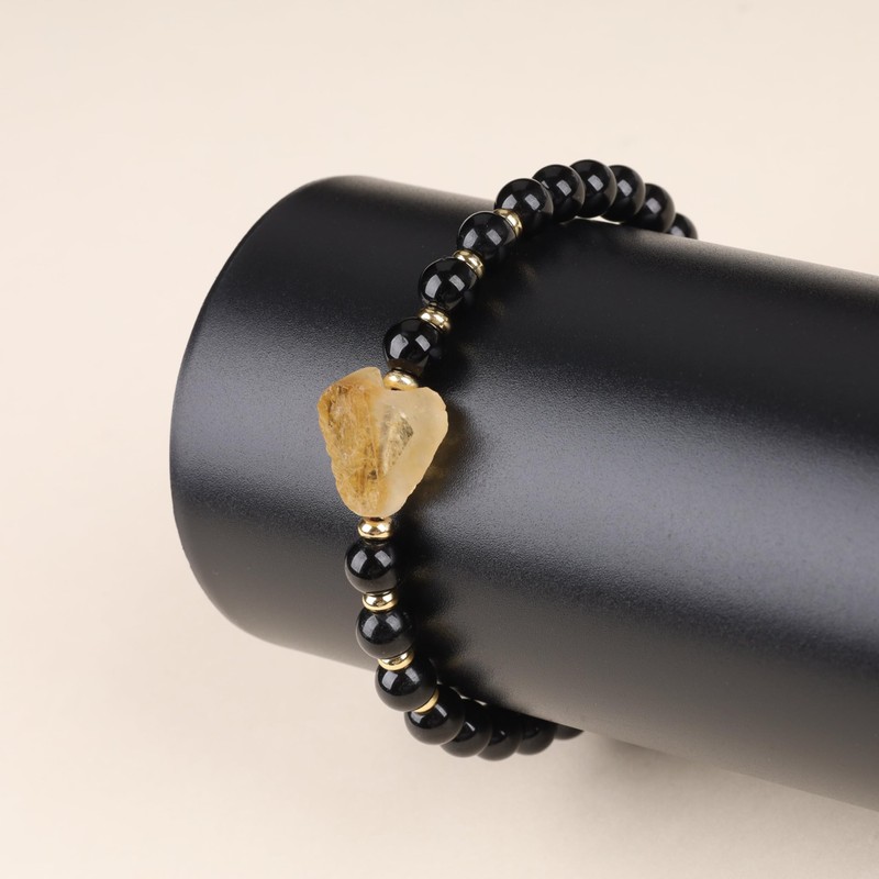 - Material: natural black tourmaline, citrine and gold plated stainless steel intermediate parts for a harmonious combination