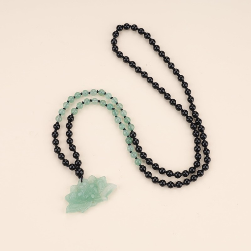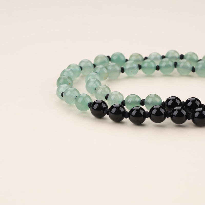 - Material: 108 beads 6 mm onyx, with natural green aventurine pendant and handmade knot rope.