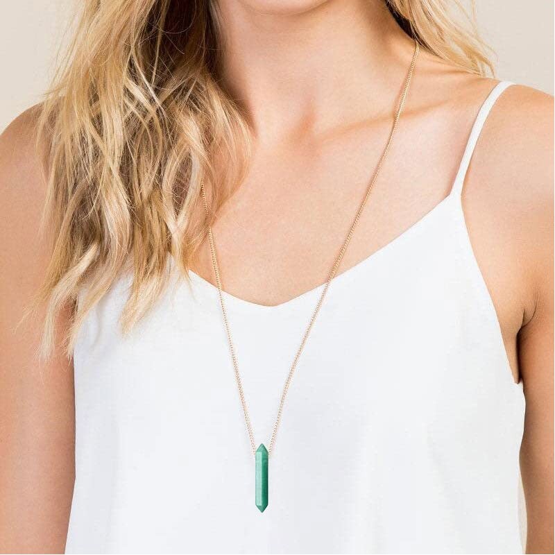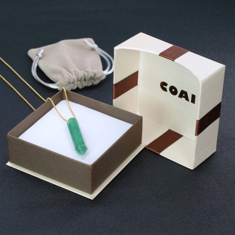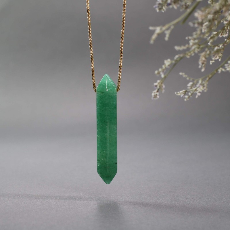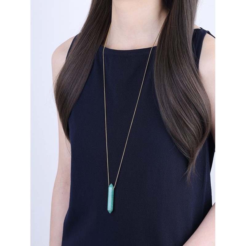 Coai Unisex Necklace with Hexagonal Gemstone Pendant, Base Metal, Aventurine Green