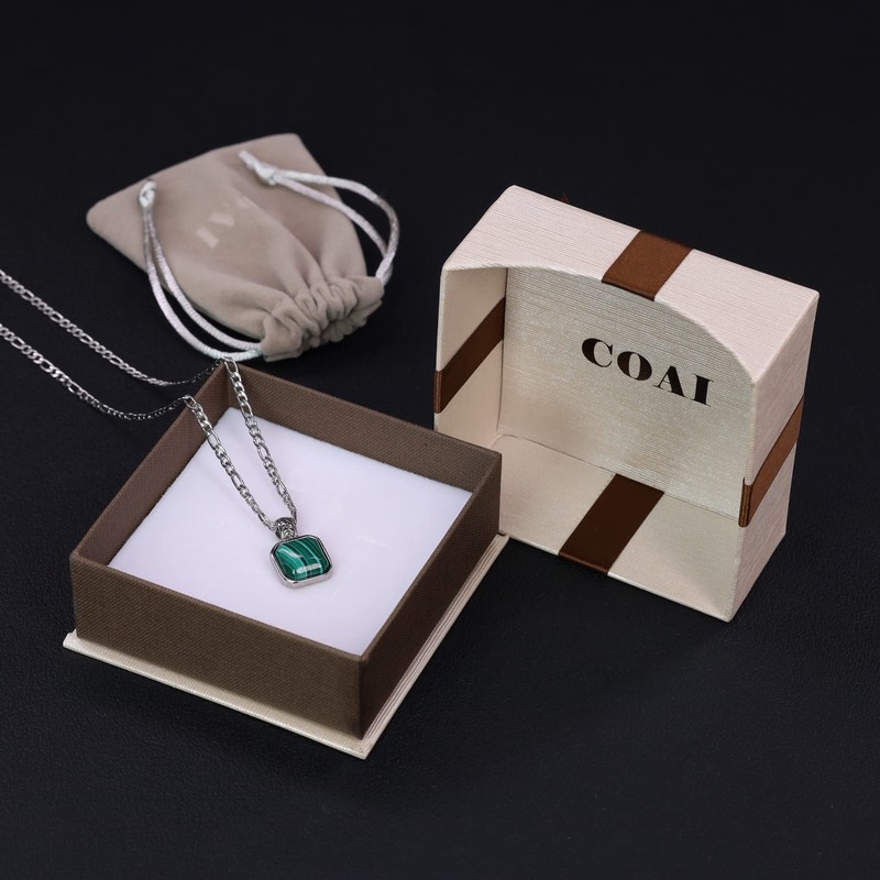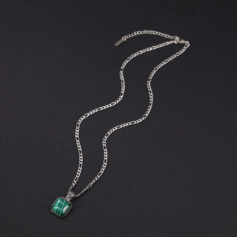 COAI Unisex Surfer Necklace with Square Gemstone Pendant, Stone, Malachite