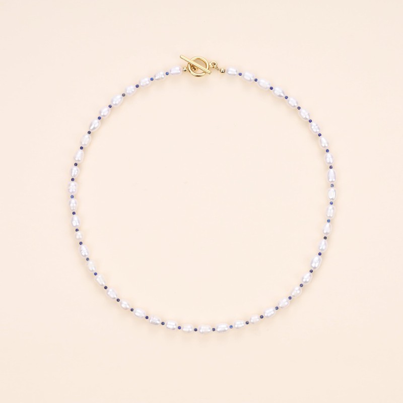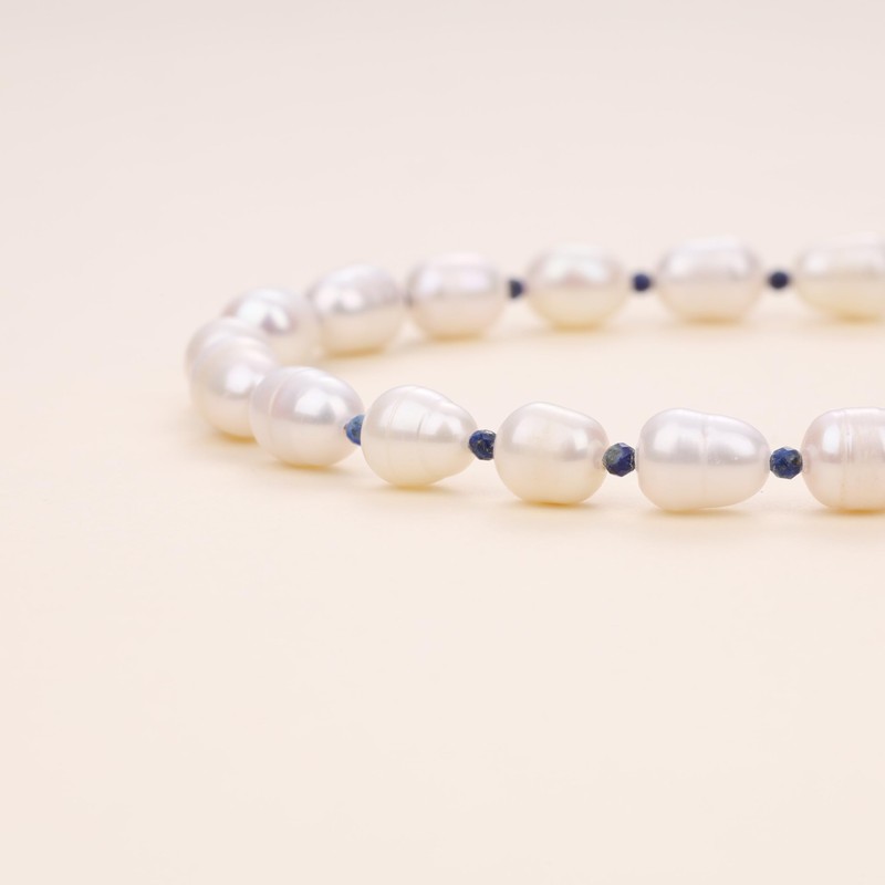 - High-quality materials: this pearl necklace is made of 7 mm x 9 mm natural freshwater pearls and 2 mm faceted lapis lazuli