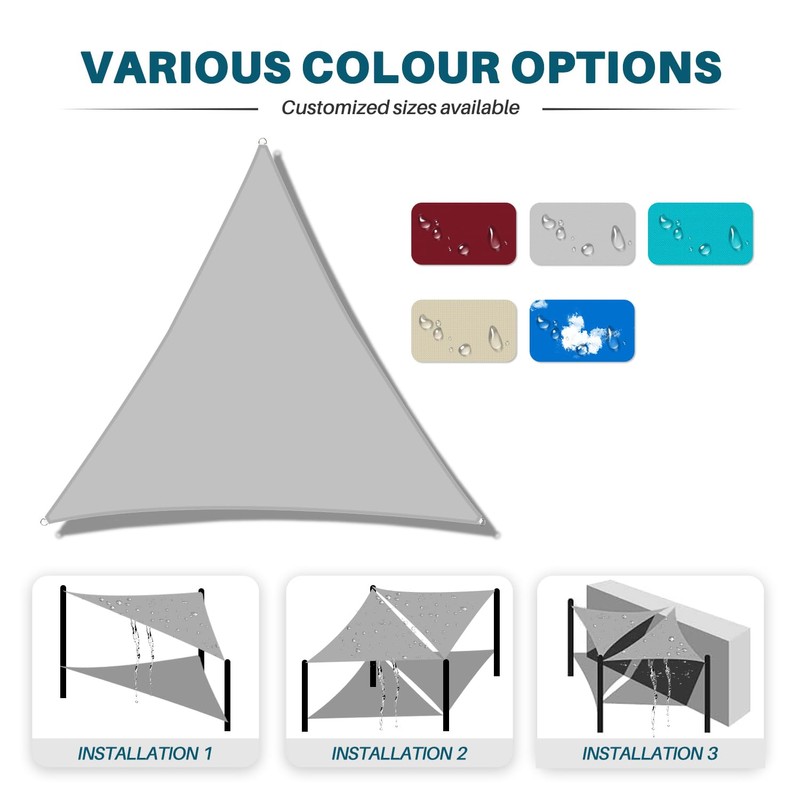 - MATERIAL- Our waterproof sunshade sail is made with a 100% polyester fabric with unique woven structure. Blocks up to 95% of the sun's sunshine rays and repels up to 99% of rainwater, keeping cool for you.