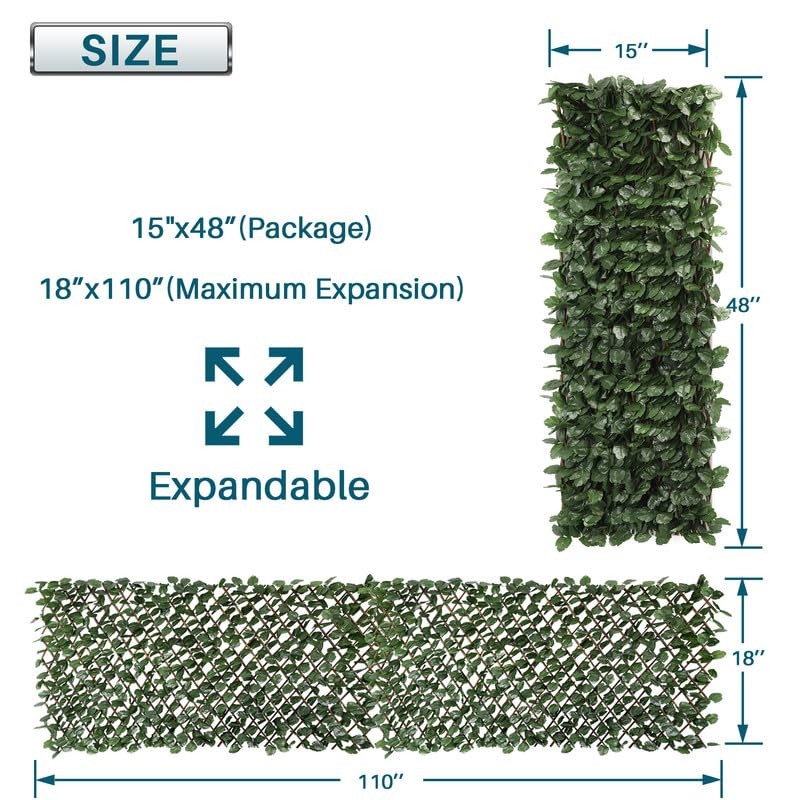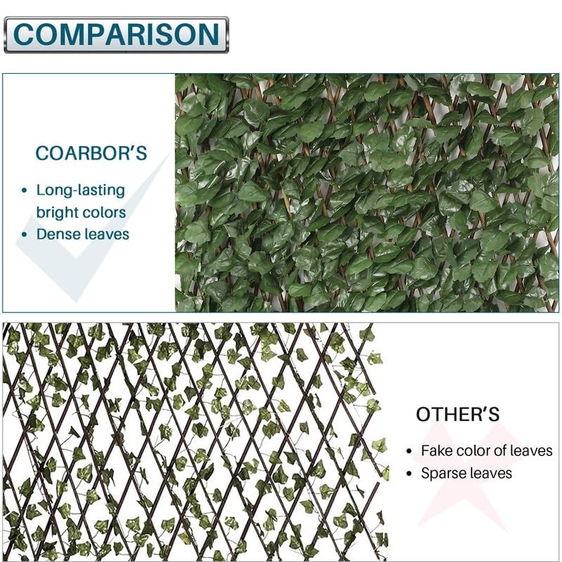 Coarbor 4 Packs Artificial Leaf Ivy Expandable Privacy Fence Screen Grass Wall Stretchable Fencing for Deck Balcony Patio Porch Trellis Decor- Single Side Leaves