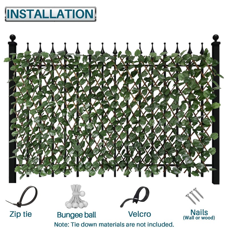 - Installation- Easy to install and move- using zip ties can easily put the fence up to any fence such as chain link fences, wooden fences, railings, and trellis.