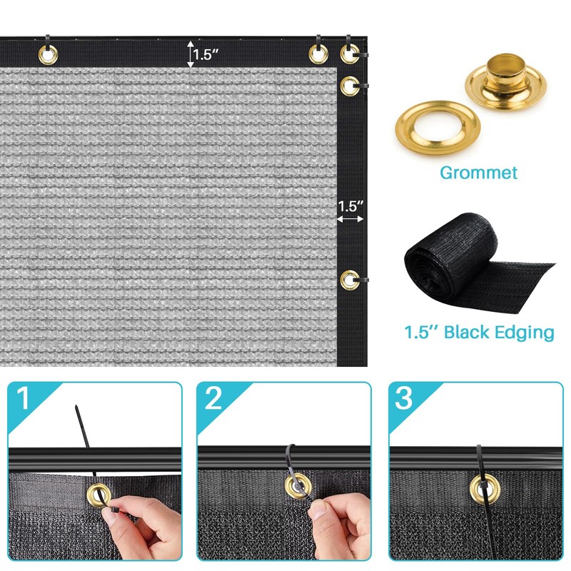 - EASY INSTALLATION- Installation is simple and can be done with one person. Use zip ties or heavy-duty staple guns to secure the fencing to your porch fence, deck, railing, or chain-link fence. Just run them through the grommet, secure tie down, and cut off access.