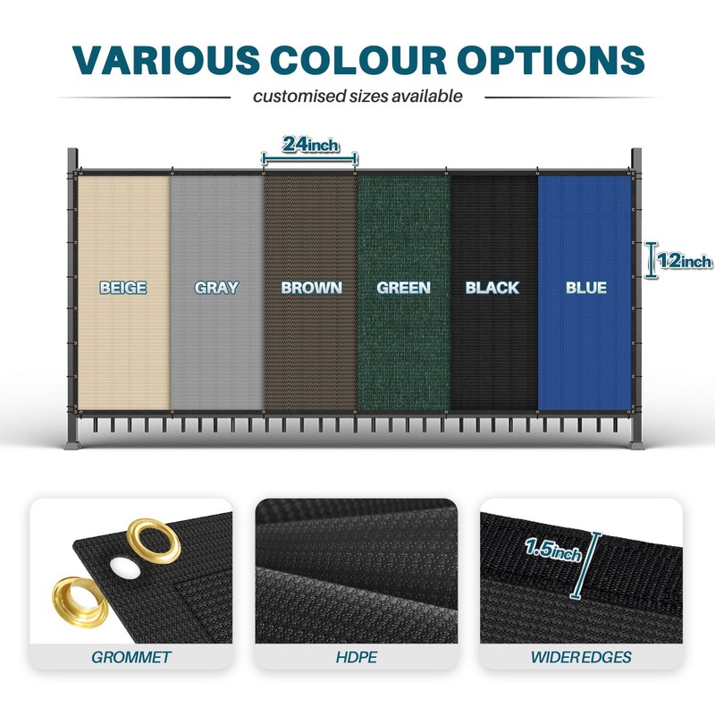 - BRASS GROMMETS: All 4 edges grommets placed evenly apart 12’’ vertically and 18’’-24’’ horizontally; each corner has 3 grommets placements for extra reinforcement- help to better secure the fence;