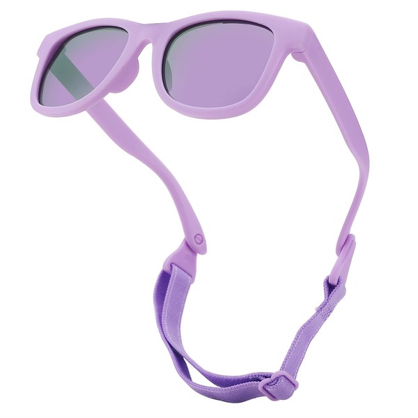 COASION Bendable Flexible Polarized Newborn Baby Sunglasses with Strap for Infant Boys Girls Age 0-12 Months (Purple/Purple Mirror)