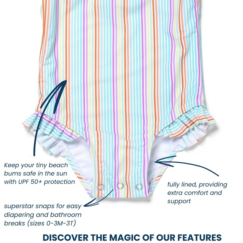 - Keep your tiny beach bums safe in the sun with our swimwear featuring UPF 50+ protection!