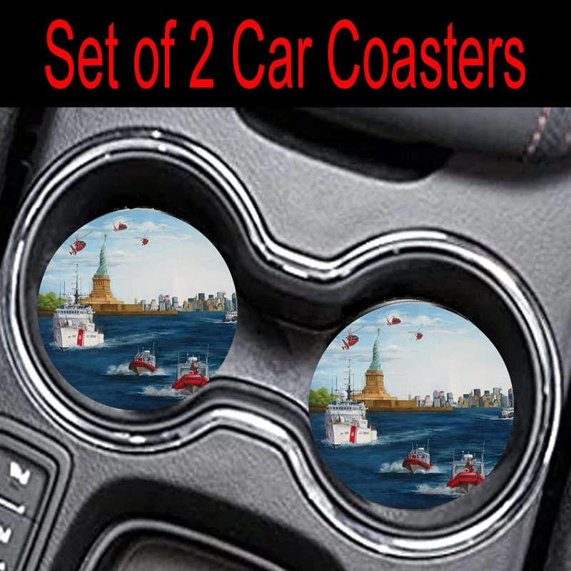 Coast Guard Ceramic Car Coaster Set 2.56" (2 Pack)