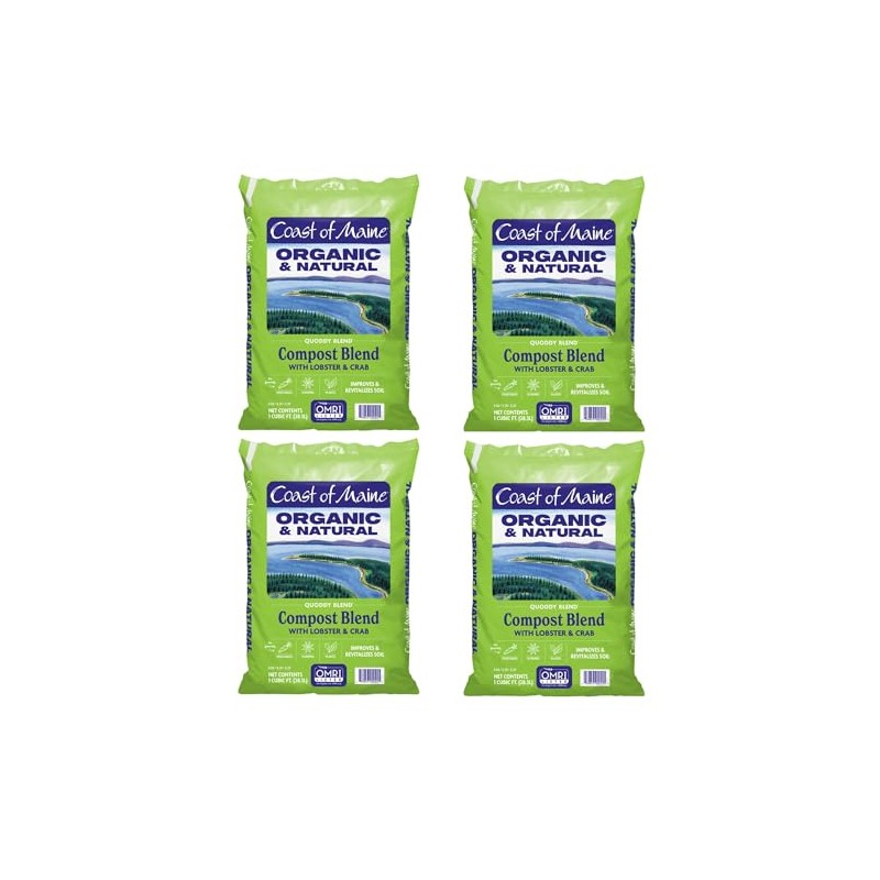 Coast of Maine Quoddy Blend, 1 cu ft (Pack of 4) Organic and Natural Compost Blend with Lobster and Crab - Improves and Revitilizes Soil