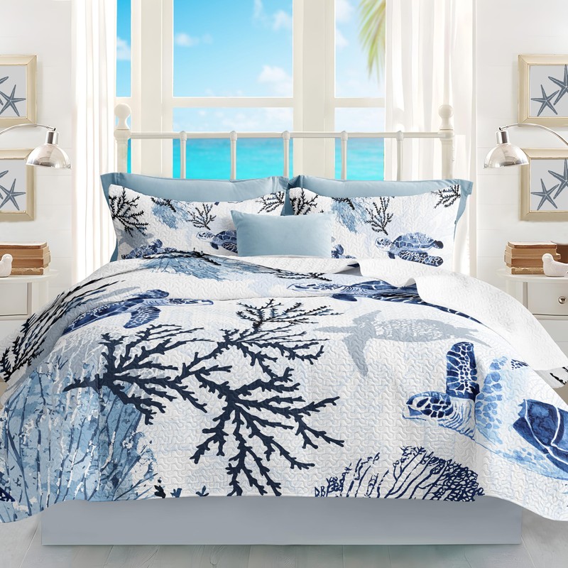 - 【Care Instruction】 Our coastal bedding adopts ultrasonic printing, having features anti-fading, shrinking properties, long life, and durability. Please wash before use. Machine wash in cold. Fast drying at low temperature. Coastal beach style coverlet bedding set will be better to wash in the laundry bag, which could preferably protect the coverlet.