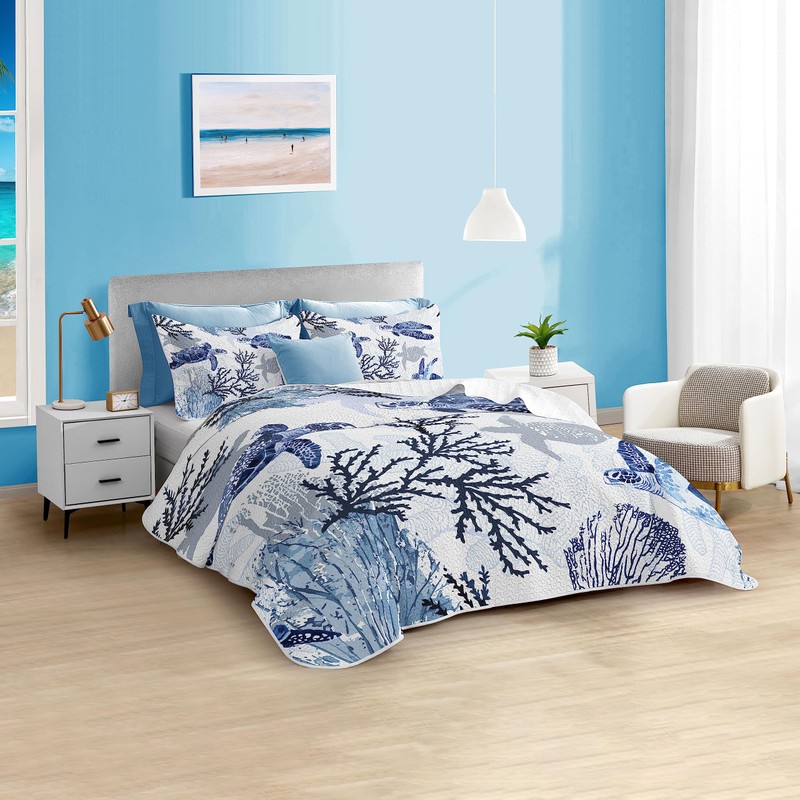 - 【Coastal Design】 Coastal bedding nautical ocean pattern quilt, coastal patchwork quilts set creating a beach atmosphere and making your eyes shine. Light up your bedroom, guest room,vacation room with vivid and stylish coastal quilt bedding set.
