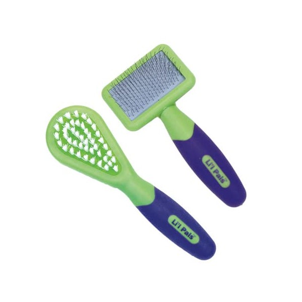 Coastal - Li'l Pals - Kitten Slicker Brush with Coated Tips and Bristle Brush