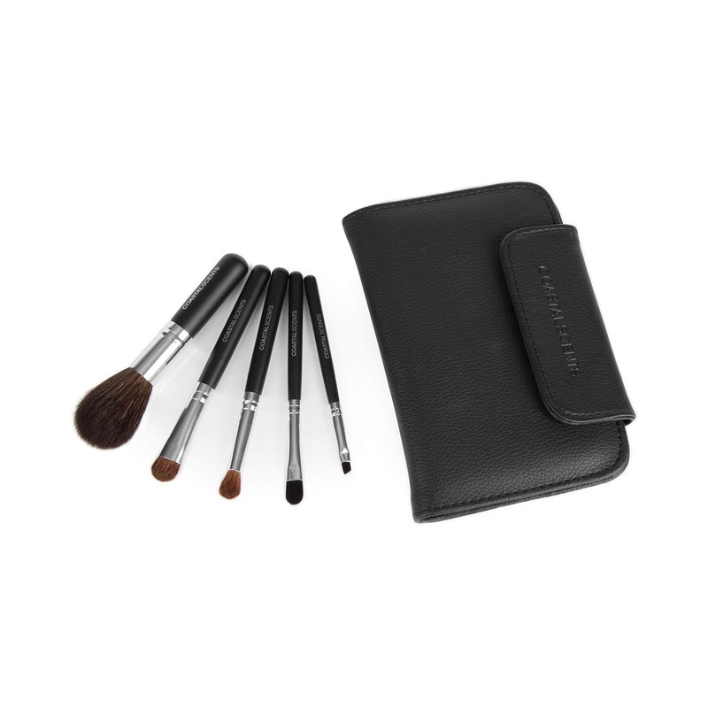 - Chicly designed, the Coastal Scents fine-grain faux leather case provides custom pockets for the five soft brushes organizing them neatly for quick touch-ups on the go.