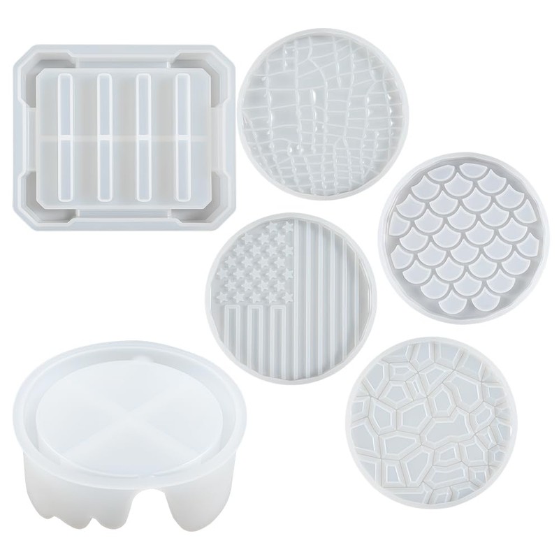 Coaster Epoxy Resin Casting Silicone Molds Patterned Round Tray, Holder Stand, Storage Box Pack of 6 Kits