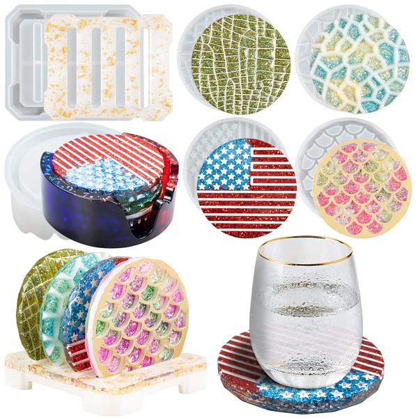 • Different Pattern Coaster Mold: 4 molds (dinosaur skin, snake scales, mermaid scales, U.S. flag) for coasters and 1 mold for coaster storage holder, 1 mold for coaster storage. Keep your table or desk organized and ordered