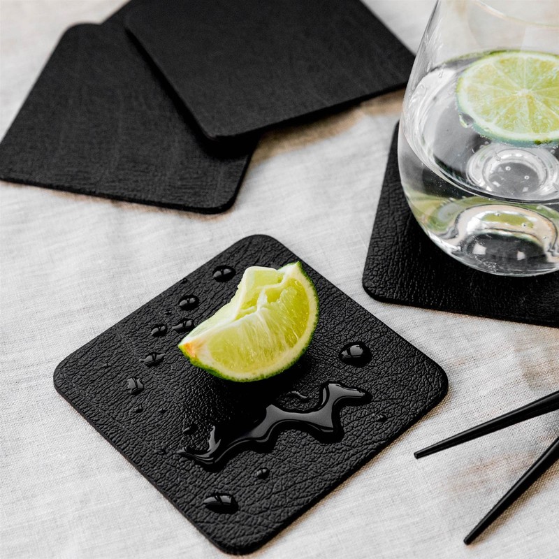 Coaster Set of 8 Jet Black Coasters, Made in The UK from Recycled Leather. Ideal Housewarming Gift