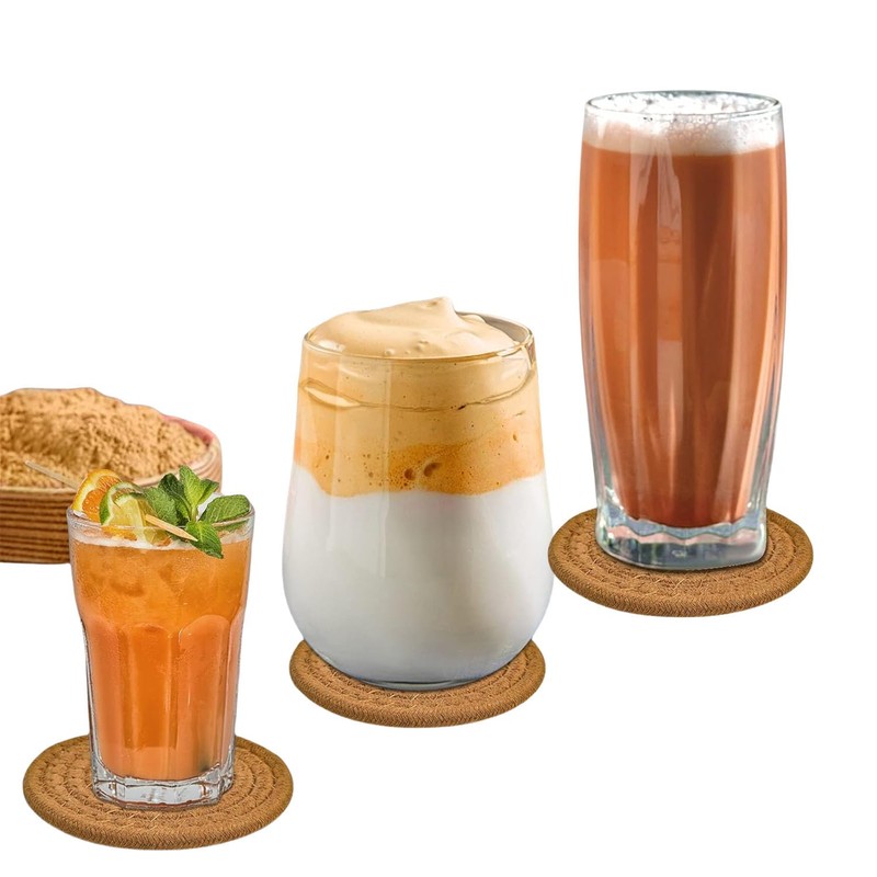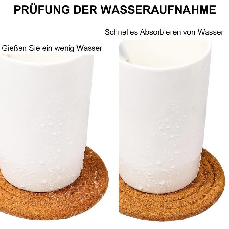- HANDMADE COASTERS This set includes 6 pieces of round coasters, which were made by hand from cotton.