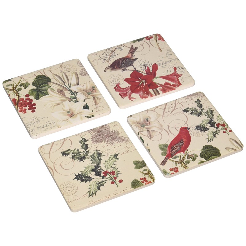 CoasterStone Absorbent Coasters, 4-1/4-Inch, "Winter Garden", Set of 4