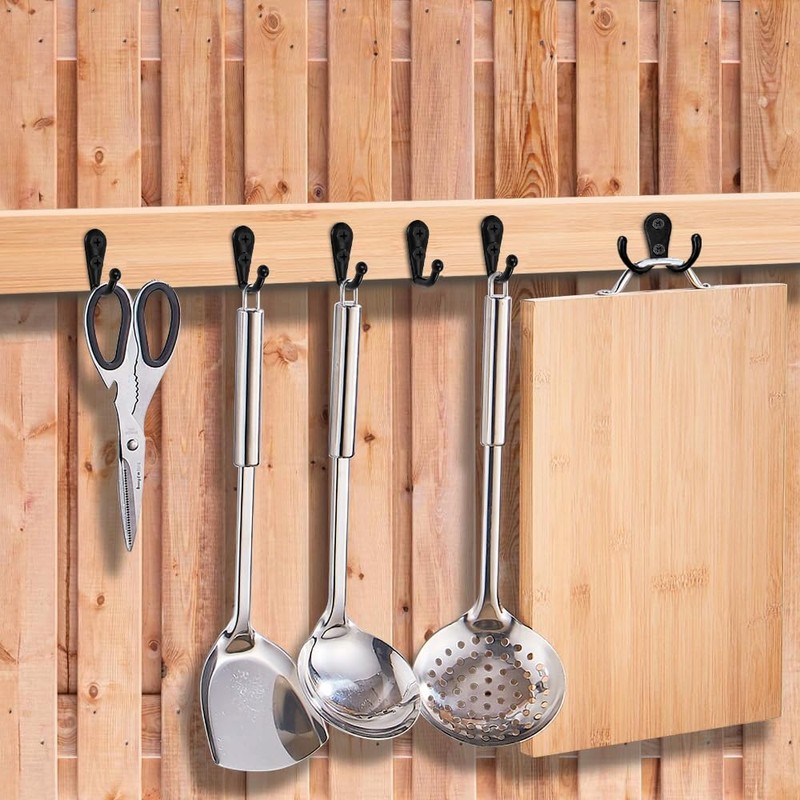 - Multifunctional use: the wall hooks for screwing are suitable for bedroom, bathroom, kitchen, wardrobe and other places. The black wall hooks hang a variety such as keys, hats, belts, bags, shirts, towels and more.