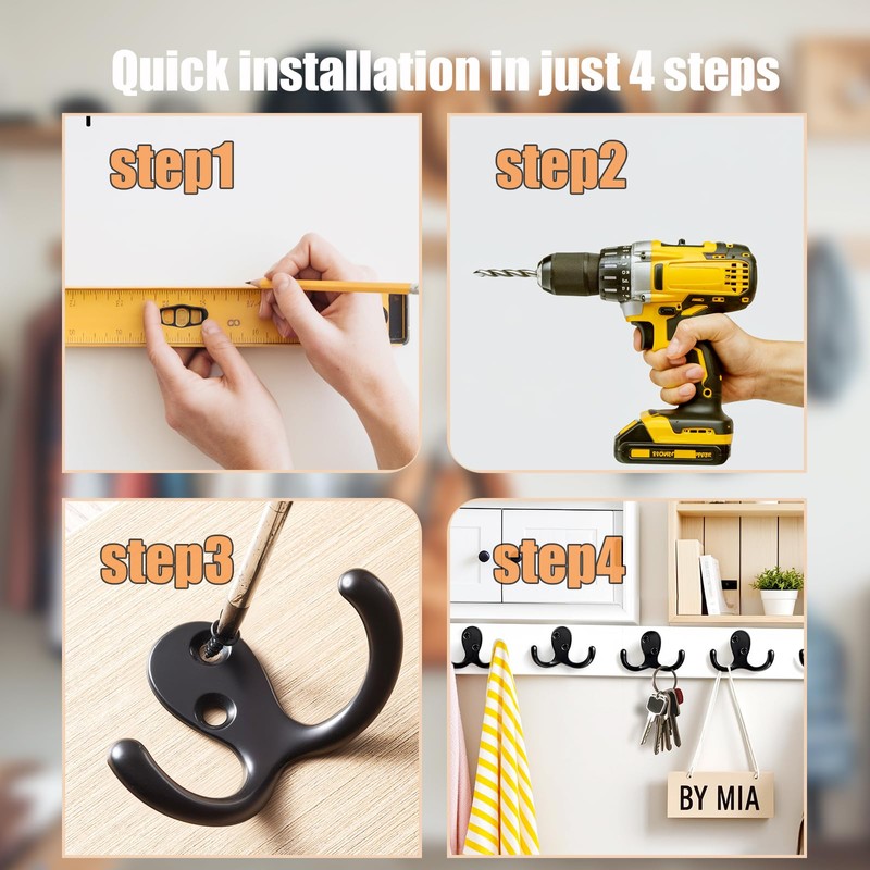 - Helps you organize your home efficiently and increase space: Still struggling with clutter and lack of space in your home? Our double-pronged hooks maximize storage space, allowing you to hang coats, bags, towels and hats, keys, and other common items, keeping everything within reach and making your home more spacious