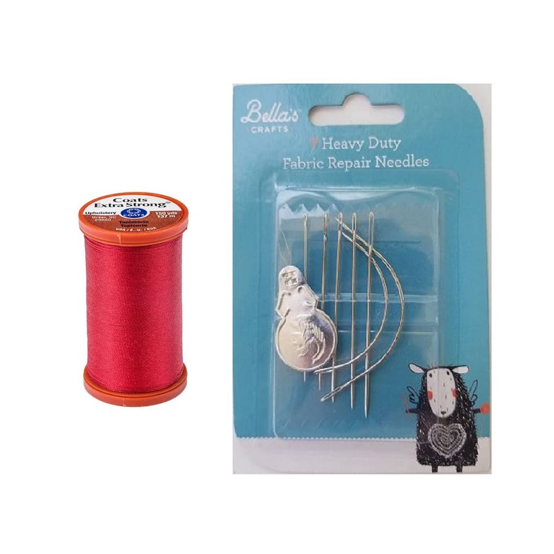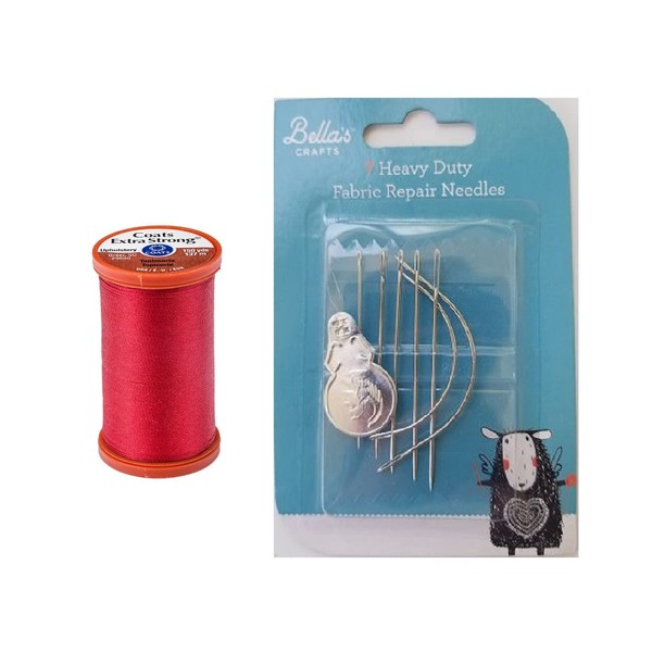 Coats & Clark Extra Strong Upholstery Thread, 150 Yds, S964, Bundle with Bella's Crafts Assorted Heavy Duty Hand Needles 7 Ct (Red)