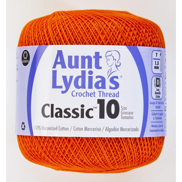 Aunt Lydia's Crochet Cotton. This high luster mercerized cotton crochet thread is perfect for crochet projects both large and small. This thread is available in a wide range of fashion solids neutral basics and alluring multi-colors that are ideal for home decorating and fashion projects. Article 154 is a size 10 bedspread weight 3ply 100% mercerized cotton thread. White and Ecru: 400yd/365.75m Solids: 350yd/320m and Shaded Colors: 300yd/274.3. Size 7/1.5mm crochet hook is recommended. Care: machine wash (. 104F/40C) dry flat do not bleach do not dry clean OK to iron. Imported.