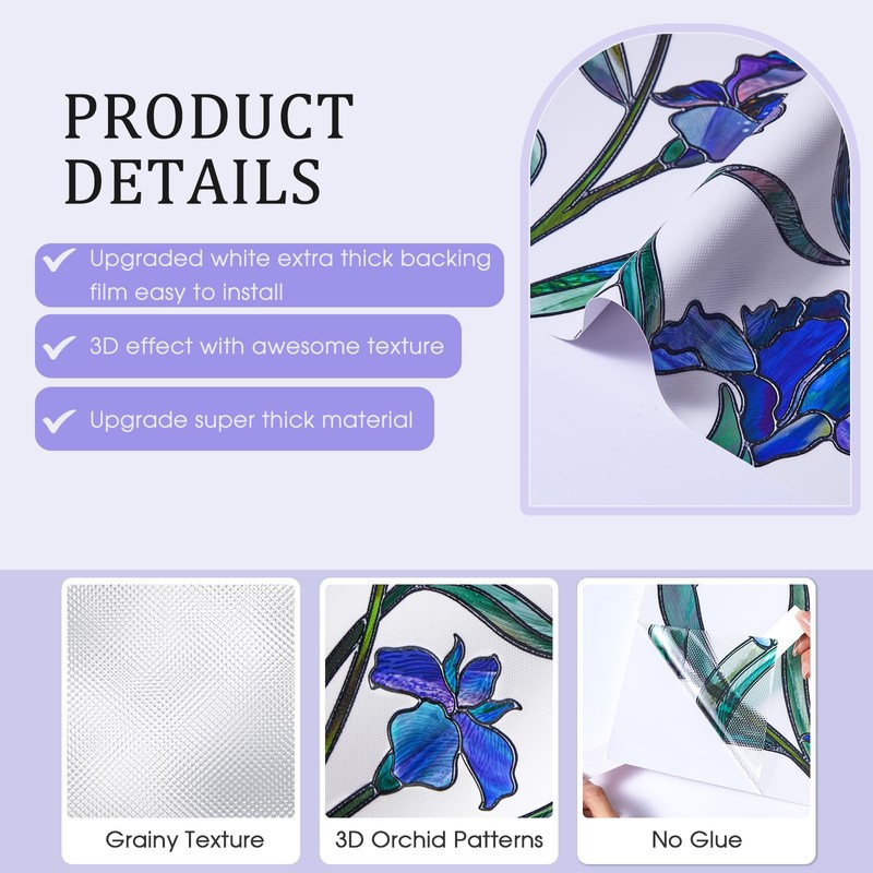 - Privacy protection&decorative: 98% privacy, unable to view from indoors to outdoors or from outdoors to indoors, unique 3D stereoscopic design, 80% of people believe that flowers look like real colored glass, it can replace expensive and bulky colored glass, and can be reused, saving expenses