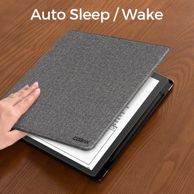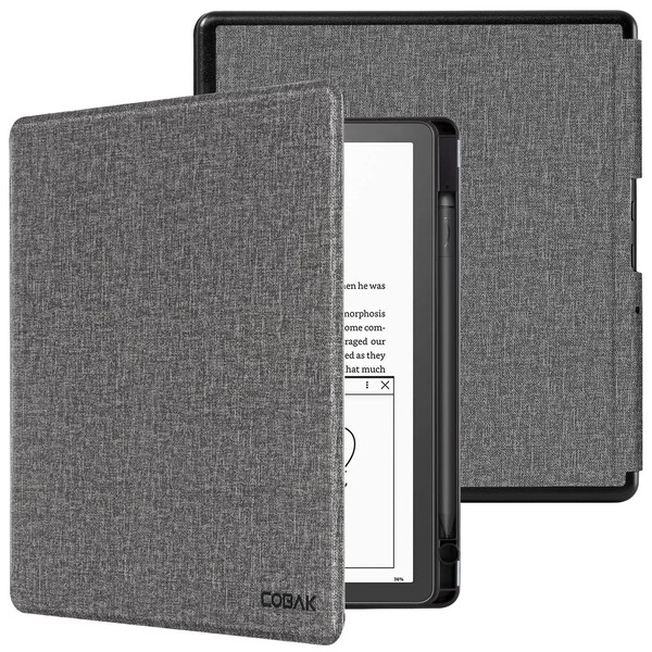 CoBak Case for 10.2 inch E-Reader 2024 and 2022 Released - with Built-in Pen Holder and Auto Sleep/Wake Function (Fabric Grey)