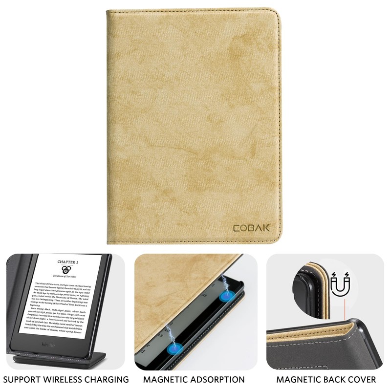 CoBak Case for 6" E-Reader - PU Leather Smart Cover with Auto Sleep/Wake & Hand Strap, not Compatible with Kobo Clara,Linen