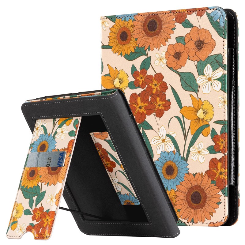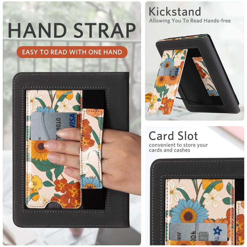 - KICKSTAND&HAND STRAP: Foldable stand design could set your hands free during your reading,build-in card slot is convenient to store your cards and cashes and the bulit-in hand strap enables holding a kindle paperwhite in one hand, so you can indulge in the reading without any tiring feeling.