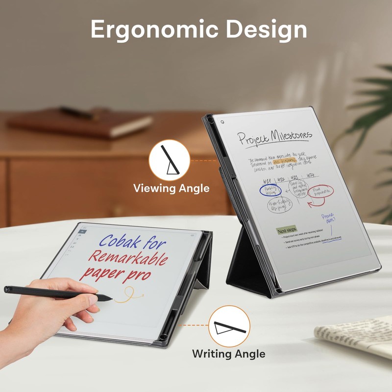 - 【Ergonomic Design】The design of remarkable paper pro case features 30-degree standing mode, offering a comfortable and convenient experience for writing and reading. Unlike conventional side multi-angle designs, this standing mode is ergonomically designed, ensuring that you can enjoy the best writing and reading anytime, anywhere