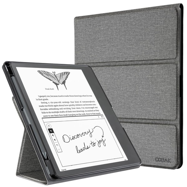 CoBak Stand Case for Kindle Scribe - Premium Folio Leather Case with Pen Holder, Auto Sleep/Wake - Compatible with 10.2 inch Kindle Scribe (2022/2024 Version) - Grey