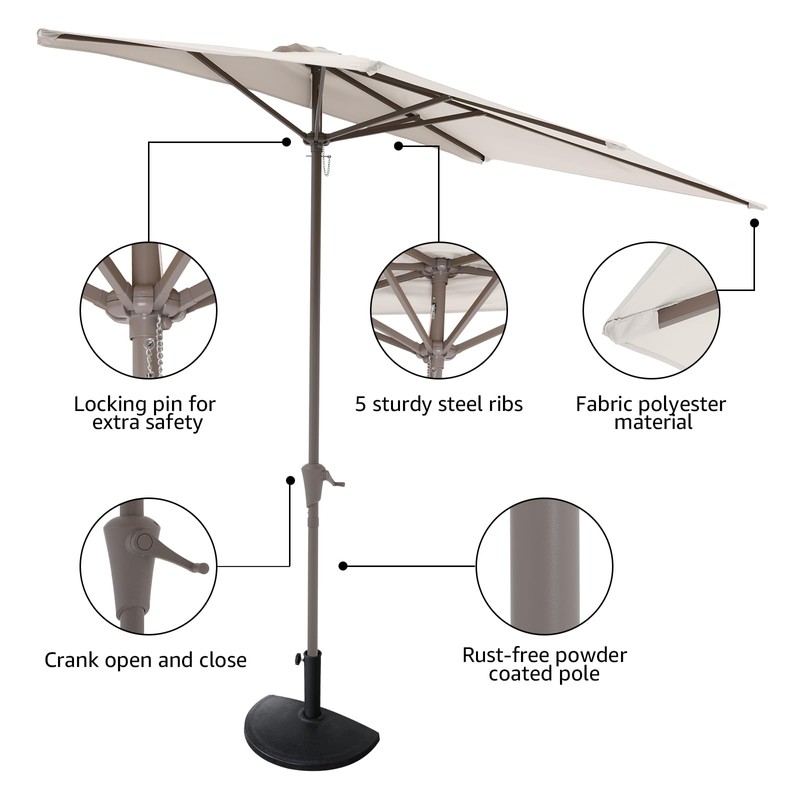 - 【Sturdy Construction】 Our half patio umbrella is made of 5 supporting steel ribs and steel pole, rust-free powder coated provide trusted durability while relaxing outdoors