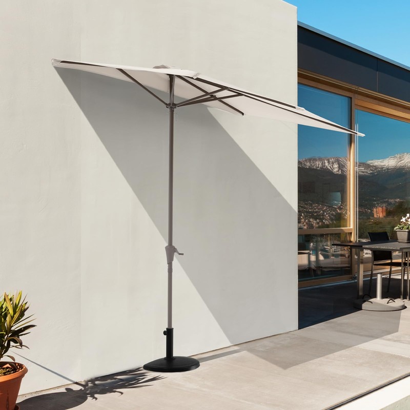 - 【Unique Design】 The half rectangular designed umbrella brings a unique appearance to fit the space, perfect for tight spaces that need shade, and can be pushed flush up against a wall or glass door