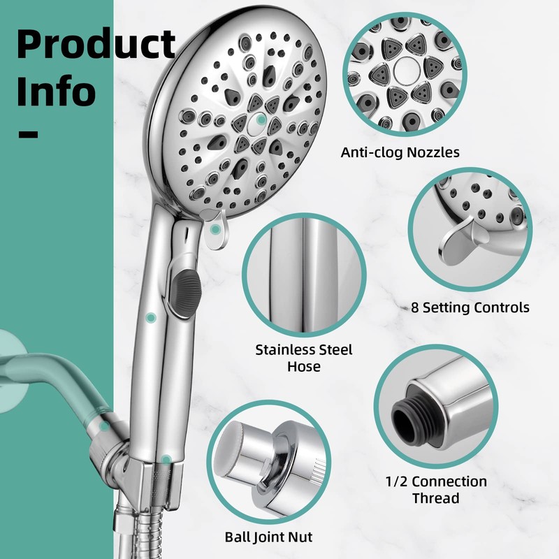 - [9 Spray Modes] Cobbe handheld shower head is different from regular shower head as it comes with 9 spray modes, which gives you a different shower experience. To meet the needs of the whole family at the same time you just need to switch between them at the touch of a button.